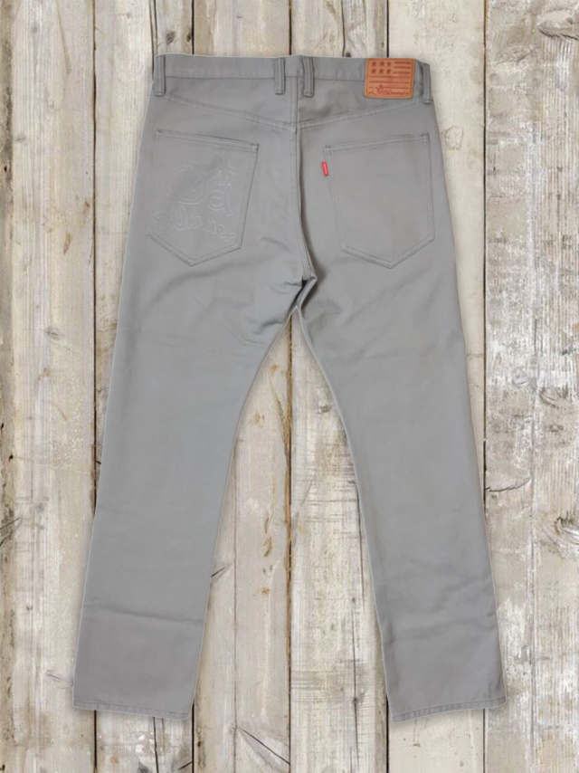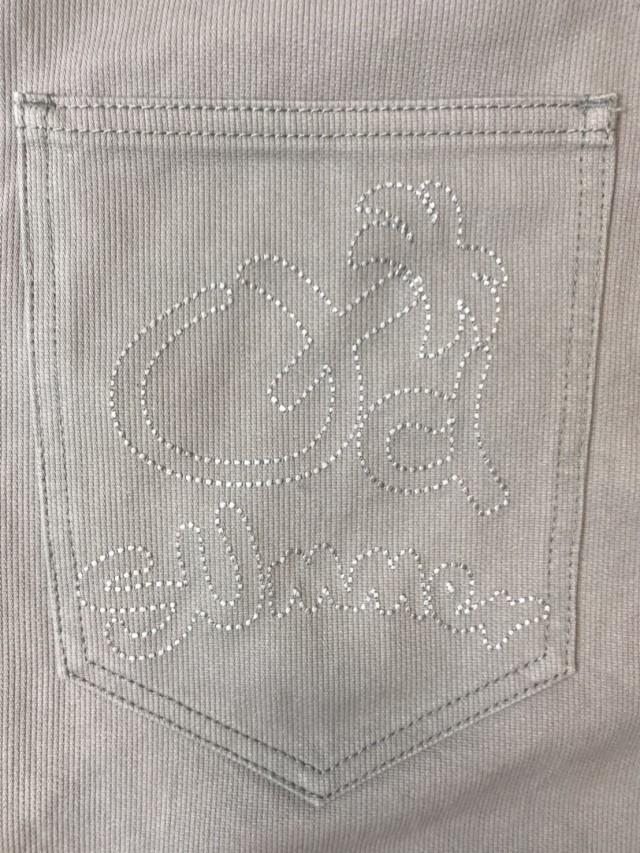 後ろポケットには生地と似た色の糸を使ったロゴ刺繍を施しました。