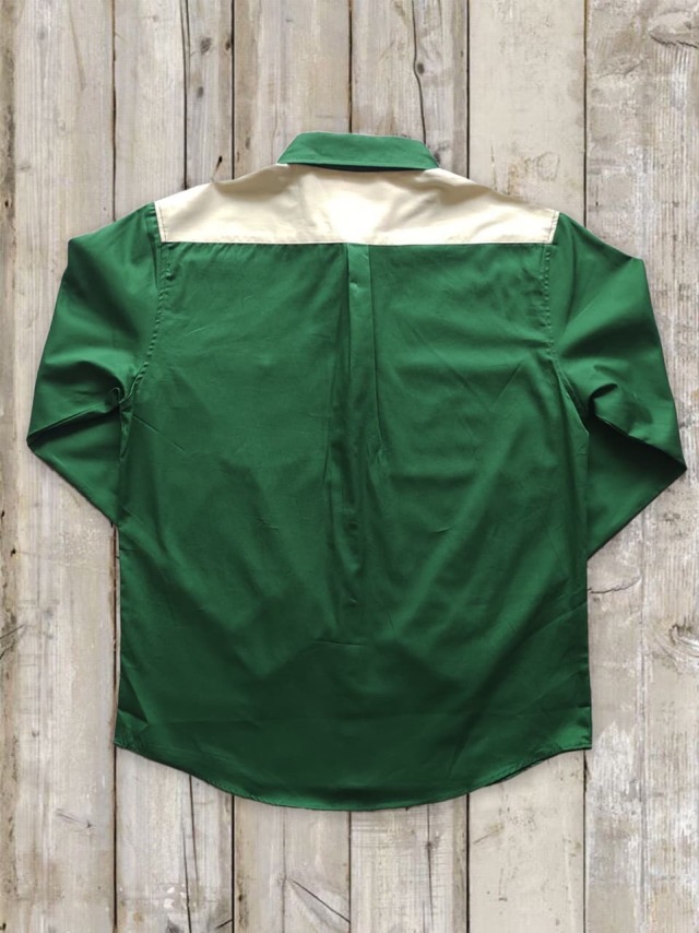 濃緑のボディカラーをベースに、肩まわりと胸ポケットにオフホワイトの差し色を施した、ビビッドでいてシンプルなデザイン。