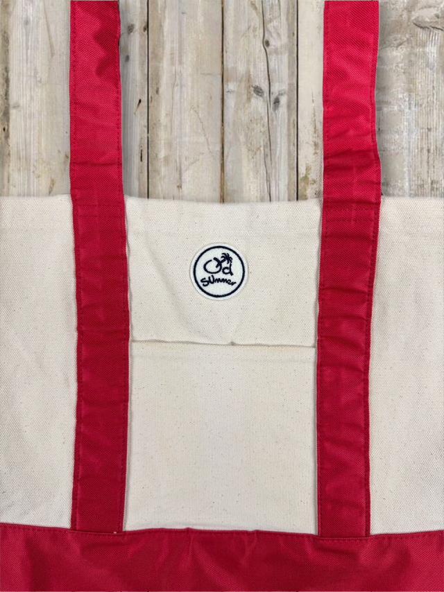 オルサマエコトートバッグ デイリーに使える実用性と、オールドサマーらしい遊び心をしっかり詰め込んだ「オルサマエコトートバッグ」が登場!軽やかなデザインながら存在感があり、毎日の相棒としてぴったりの仕上がりです。 ◾デザイン・カラー フロントには、ブランドの象徴でもある丸ワッペンと、鮮やかなイエローロゴワッペンをオン。シンプルなフォルムの中でアクセントとして映え、持つだけでオルサマらしいポップなムードが楽しめます。 カラーはレッドとネイビーの 2 色展開。 どちらも普段のコーデに差し色として取り入れやすく、男女問わず使える万能カラーです。 ◾ファブリック 本体には、コットン 100%のしっかりしたキャンバス素材を使用。 耐久性があり、毎日使っても頼れるタフさが魅力です。 さらに、カラー部分にはポリエステル 100%を使用し、裏面に施されたポリウレタンコーティングによって、汚れがついても落としやすい仕様に! 雨の日やアウトドアでも気兼ねなく使える、扱いやすさにこだわったつくりです。 ◾フォルム・サイズ 大容量でマチも広く、お買い物・通勤・通学・ジムなどあらゆるシーンに対応できる頼れるサイズ感。肩掛けしやすいハンドルの長さで、荷物が多い日でもストレスなく持ち運べます。 普段づかいはもちろん、旅行のサブバッグとしても活躍する、実用性バツグンのトートバッグです。 使いやすさの中にしっかり個性を込めた、オルサマらしい 1 点です。