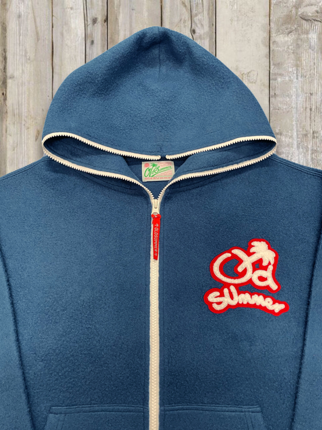 冬の街を歩くときに欲しいのは、“軽さ”と“暖かさ”と“気分の上がる色”。 その3つをちょうどいいバランスで詰め込んだふわふわしっとりな質感のフルジップパーカーです。 ■デザイン・カラー 明るい陽射しの下で映える、ディープブルーと温かみのあるビターオレンジ。 男女ともに着やすい発色で、冬のコーデが一気に華やぎます。 カジュアルにもきれいめにも振れるので、デニム、チノ、ワイドパンツなどどんなボトムとも好相性です。 気取らずに羽織るだけで、“抜け感のある上品カジュアル”が完成します。 右腕のワッペンがシンプルになりすぎない絶妙なバランスに。 横から見ても、後ろから見ても“かわいい・かっこいい”を両立できる作りになっています。 フルジップ仕様なので、温度調整も簡単。 Tシャツに軽く羽織ってもよし、シャツやニットと重ねてもよしの万能アイテムです。 ■ファブリック 素材には、アクリル・ポリエステル・ウールを絶妙にブレンド。 見た目のもこっとした可愛さとは裏腹に、驚くほど軽く、やさしく体を包み込みます。 (←2枚並べる) 触れた瞬間に感じる“ふわふわ・しっとり”のタッチは、この生地ならではの仕上がりに。 空気を多く含むため、軽量でもしっかり暖かく、長時間着ても疲れにくいのが魅力です。 「あったかくて軽くて、ちょっと気分が上がる服が欲しい」 そんな冬のわがままを全部叶えてくれる、オールドサマーの冬パーカー。 長く愛用したくなる一着に仕上がりました。