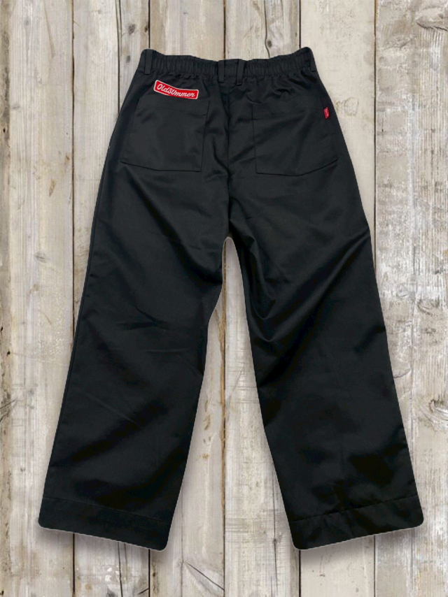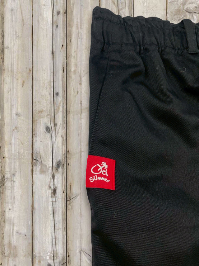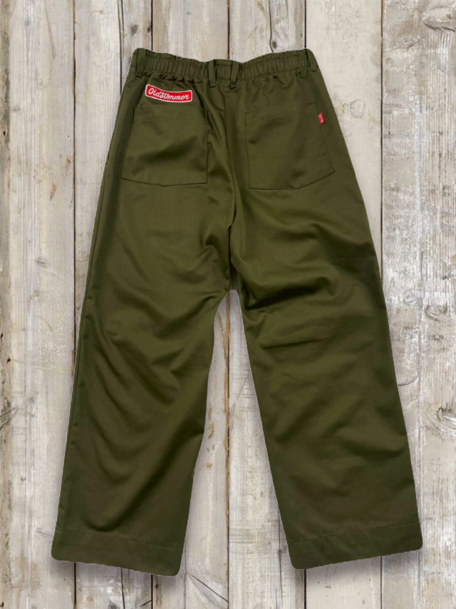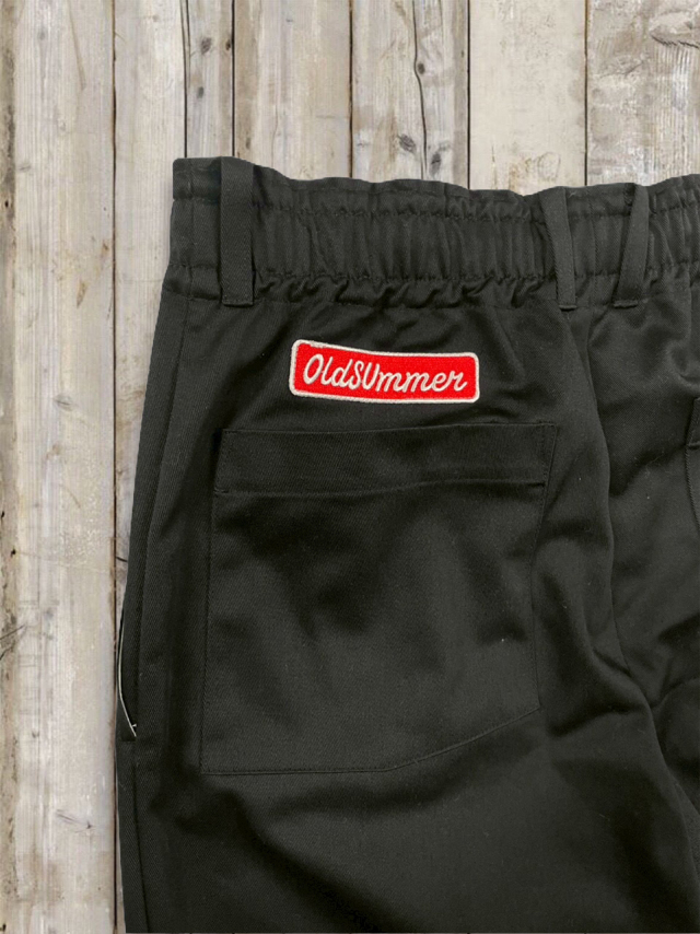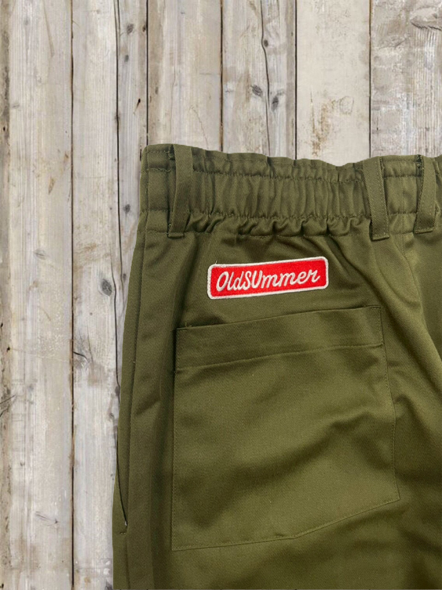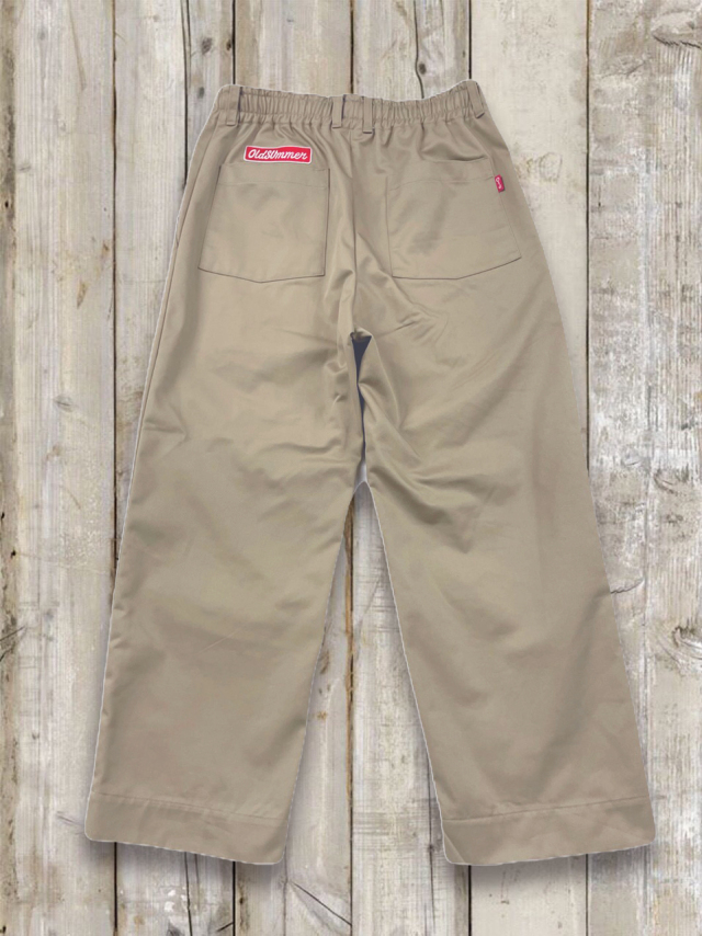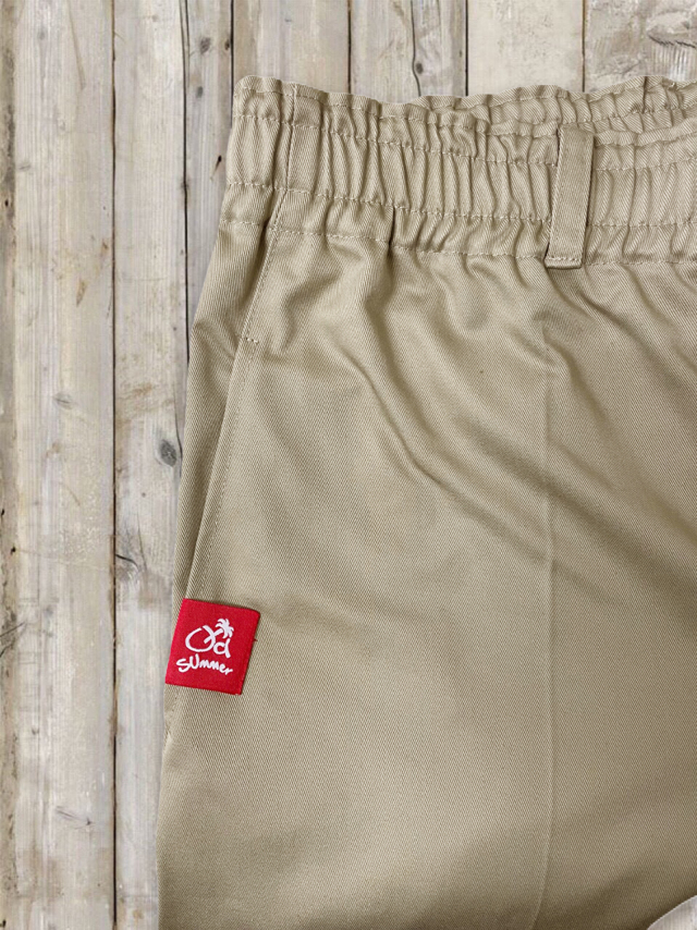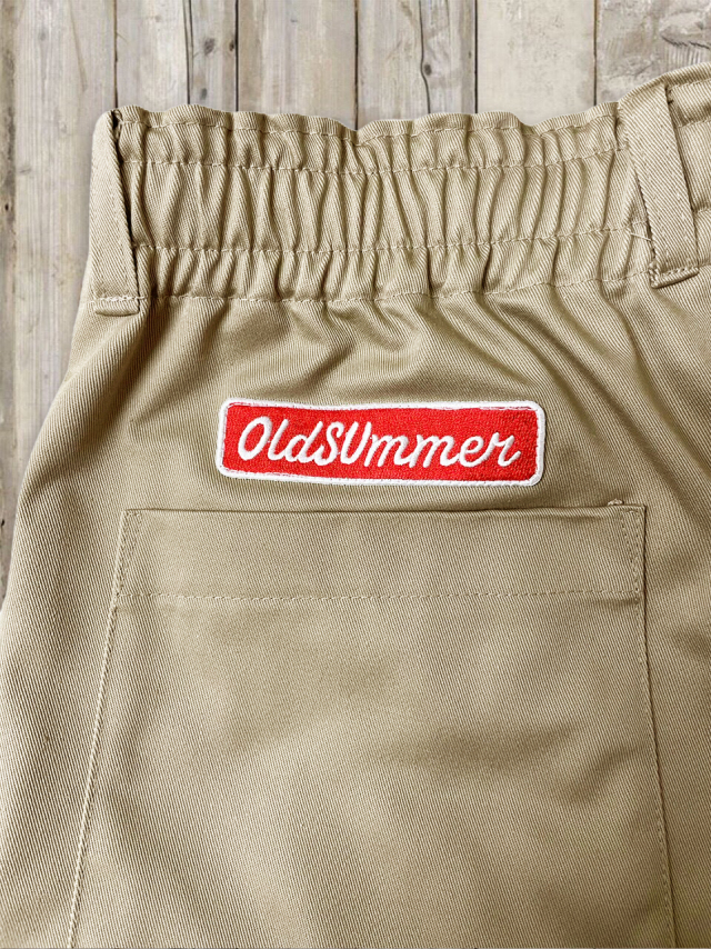 オルサマイージチノパン Z 軽やかなツイル生地を使った オールドサマーのイージーチノパン Z。 しわになりにくく、デイリーに気負わず穿ける扱いやすさが魅力です。 ほんのりハリのある素材感で、イージーパンツなのに“きれいめ見え”するの もポイント。 ■デザイン・カラー カラーはベージュ・カーキ・ブラックの 3 色展開。 どの色もトップスを選ばず、オールドサマーの T シャツやスウェット、パーカーとの相性も抜群です。 ウエストはドローコードでしっかり締められラクなのにフィット感も思いのまま。 さらに ベルトループ付きだから、ベルトを合わせればきちんと感のあるスタイルにも対応。 オン・オフの境目を自然に跨げる、頼れる一本です。 バックスタイルにはおなじみの オールドサマーのワッペンを配置。 特にカーキには白地に赤文字が少し混じったものもあり(当たりかな?!)。 ワッペンがアクセントになり、バックスタイルにも遊び心とオールドサマーらしい楽しげなムードをプラスしてくれます。 ■フォルム・サイズ ワイドすぎないリラックスシルエットで動きやすく、1 日穿いても快適。 合わせるアイテムにより、カジュアルにもフォーマルにも振れるのが強みです。 サイズは、すっきりめの M–L サイズと、ゆったり穿ける L-XL サイズの 2 タイプをご用意。 長すぎないレングスなので気分に合わせてサイズをお選びいただけます。 ■ファブリック 素材はコットン 35%・ポリエステル 65%。 コットンの柔らかな風合いと、ポリエステルの軽さ・シワになりにくさを合わせたイージーケア素材です。 洗濯後の型崩れが少なく、乾きも早いので、毎日気軽に使える一本。 ノーアイロンでもきれいにまとまる扱いやすさも魅力です。 日常の中の“ちょうどいい一本”として活躍してくれるイージーチノパンです。