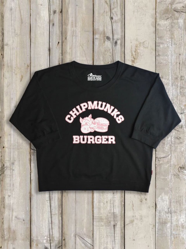 レディース七分丈ワイドスリーブTシャツ(CHIPMUNKS BURGER)