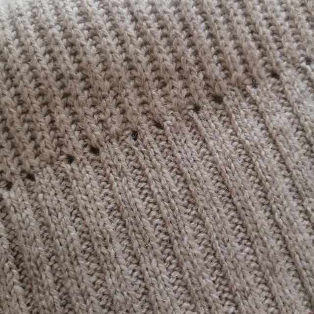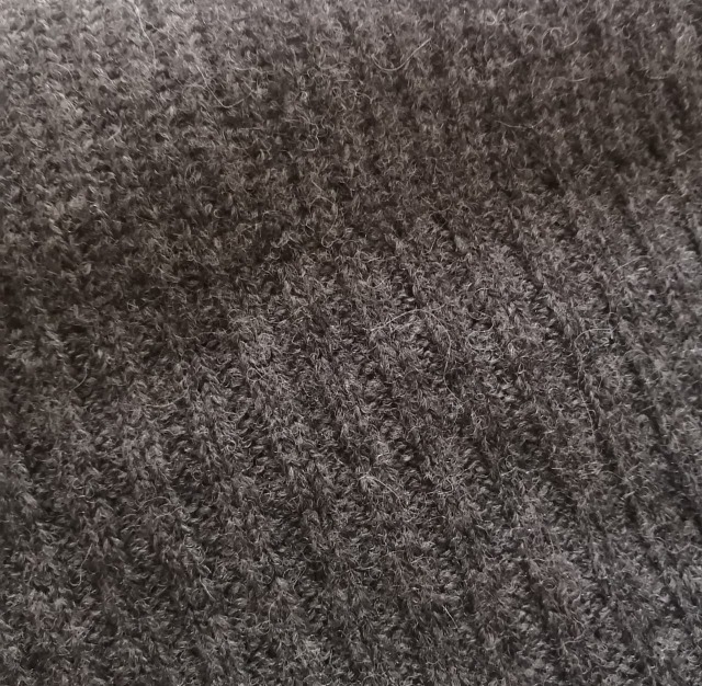 2種類の太さのリブを組み合わせて編まれていることによって、全体的に統一されたイメージながらも立体的でボリューム感のある質感に。