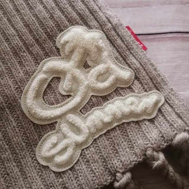ベージュには「白✕生成り」、グレーには「白✕グレー」のワッペンを。